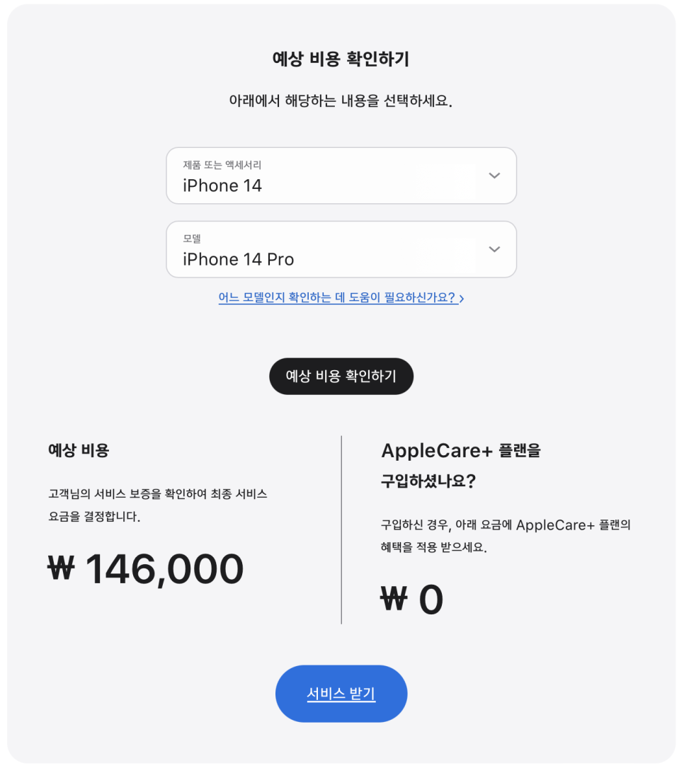 애플 공식 홈페이지에서 안내해 주는 아이폰 14프로 배터리 교체 비용