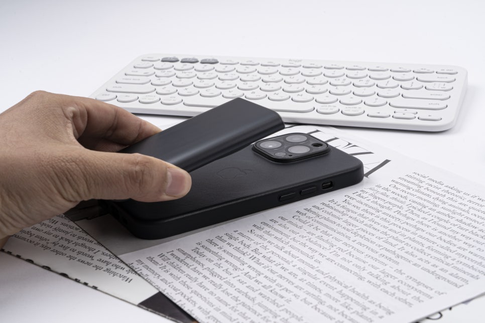 역으로 자력이 강하다 보니 가죽 케이스에는 맥세이프 자국이 진하게 남는 단점이 있었습니다.