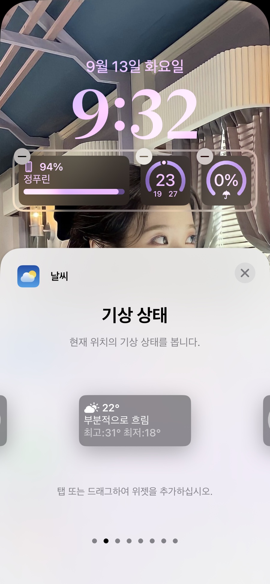 나는 날씨 위젯과 배터리 위젯을 추가했다
