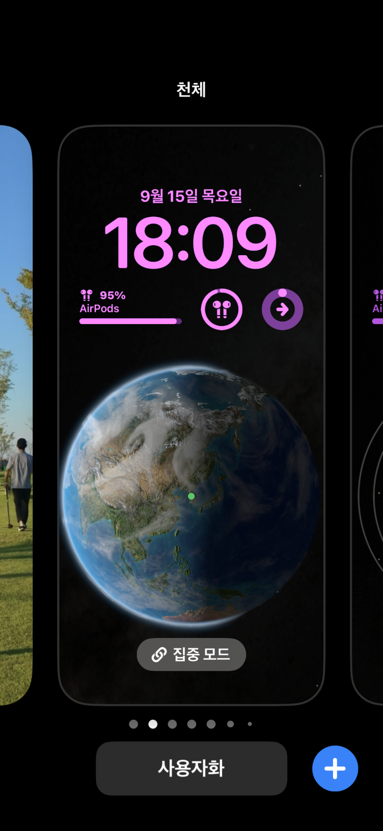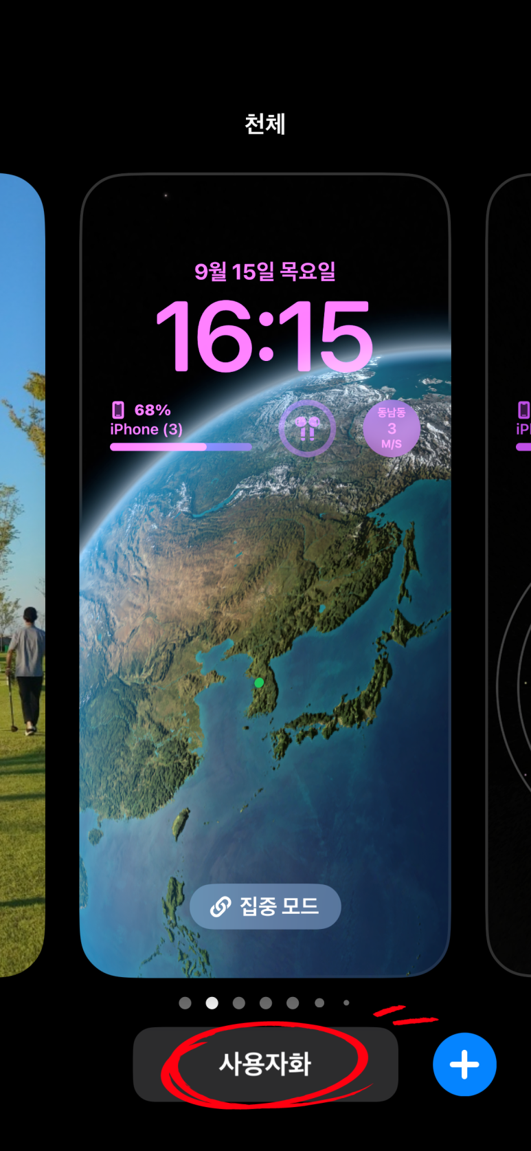 지금 보는 잠금화면 위젯을 바꾸려면 하단의 '사용자화'를 누릅니다.