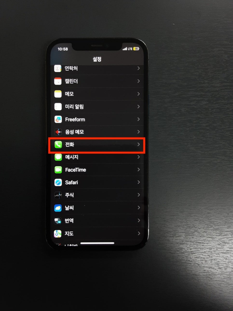 설정 앱을 실행한 후 전화를 선택해줍니다