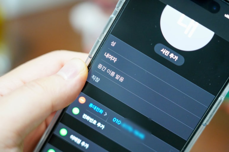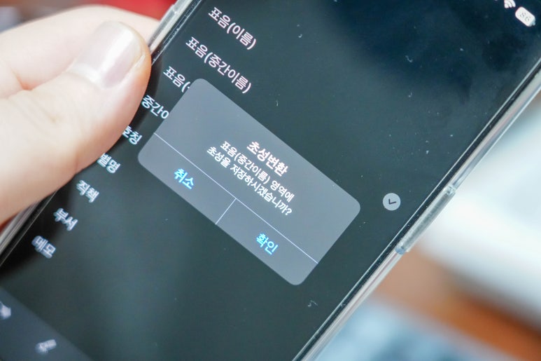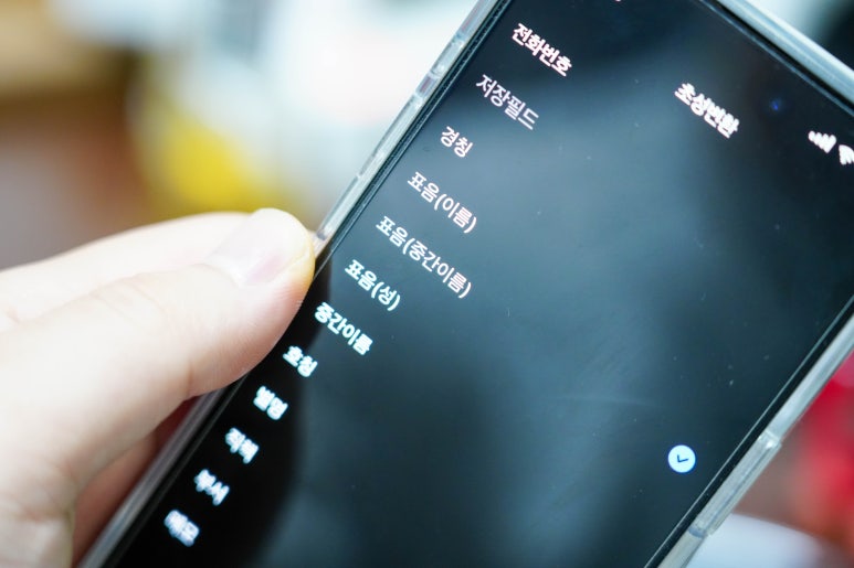 이렇게 설정을 마치셨다면 성, 이름 외 중간 이름 발음 항목이 상단에 보여질텐데 이곳에 이름에 알맞는 초성 자음을 입력해 주시고 저장버튼을 눌러주시면 이후 해당 연락처에 대한 검색은 초성검색 및 자음검색으로 처리할수 있습니다.