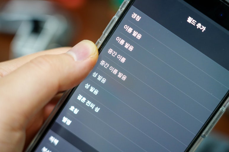 그리고 아래로 조금 내려보면 '필드 추가' 메뉴를 확인할수 있는데요. 이를 선택해 주신뒤 '중간 이름 발음' 을 다시 한번 선택해 주시길 바랍니다.