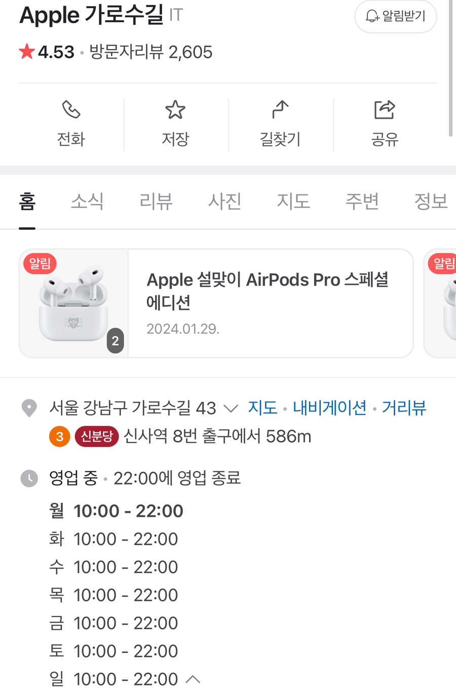 애플 Apple 가로수길 매장 위치 운영시간 주차 아이폰15 프로 아이폰15 프로맥스 애플 워치 애플 헤드셋 에어팟 아이패드 맥북 아이맥