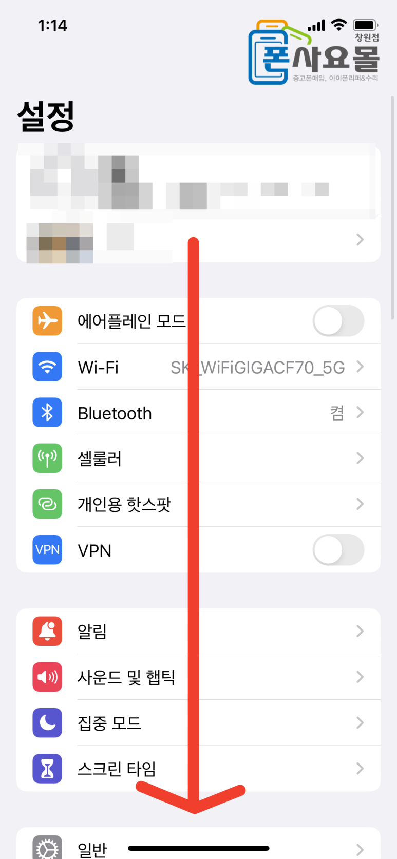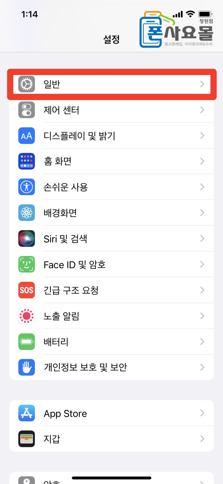 설정에 들어가셔서 '일반' 항목에 들어가신 뒤