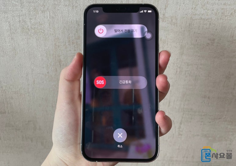 밀어서 전원 끄기 버튼이 떠도 전원 버튼에서 손을 떼지 않고