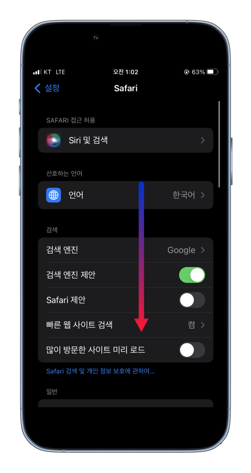 9. 아이폰 속도 빠르게 하시려면 사파리로 들어가주세요 아래로 내려줍니다.