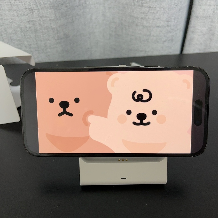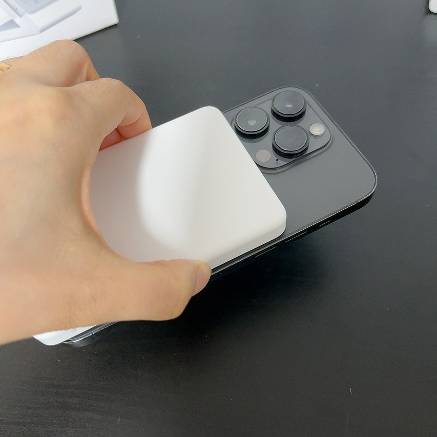 맥세이프+스텐드형 보조배터리로 아이폰 12부터 가능하고 비행기 휴대도 가능하다.