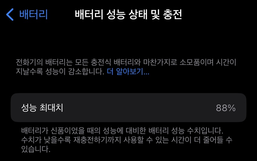 아이폰13 쓴지 3년째 배터리 성능 88%