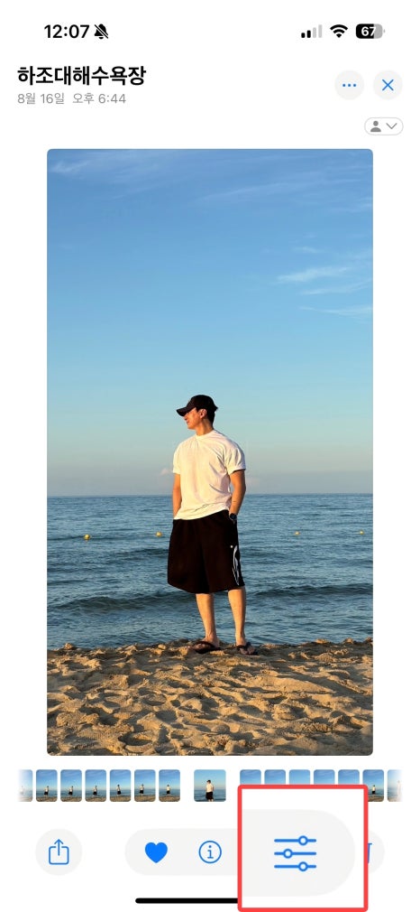 아이폰 사진 앱에서 특정 이미지를 선택해 '설정' 화면으로 들어오면
