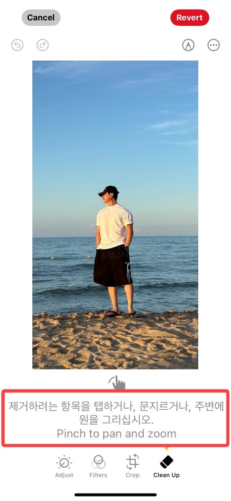 #아이폰클린업 을 활용하면 사진 속 사람, 물체를 선택하여 지울 수 있습니다.