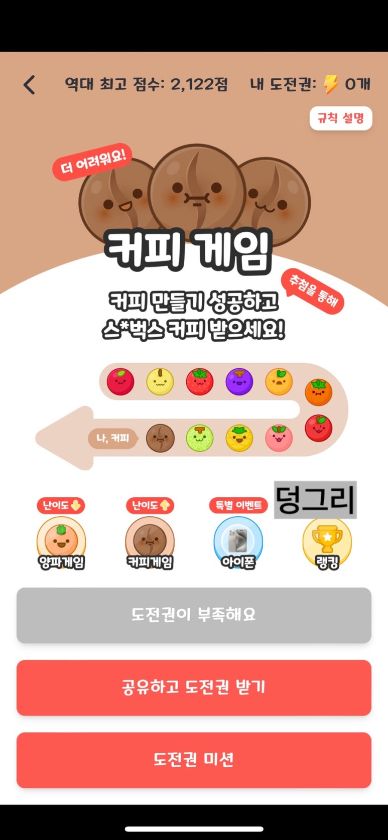커피 아이폰게임 추첨 당첨 수확 맞팜 친구