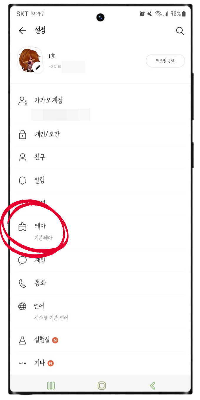 카카오톡 테마 설정으로 가셔서