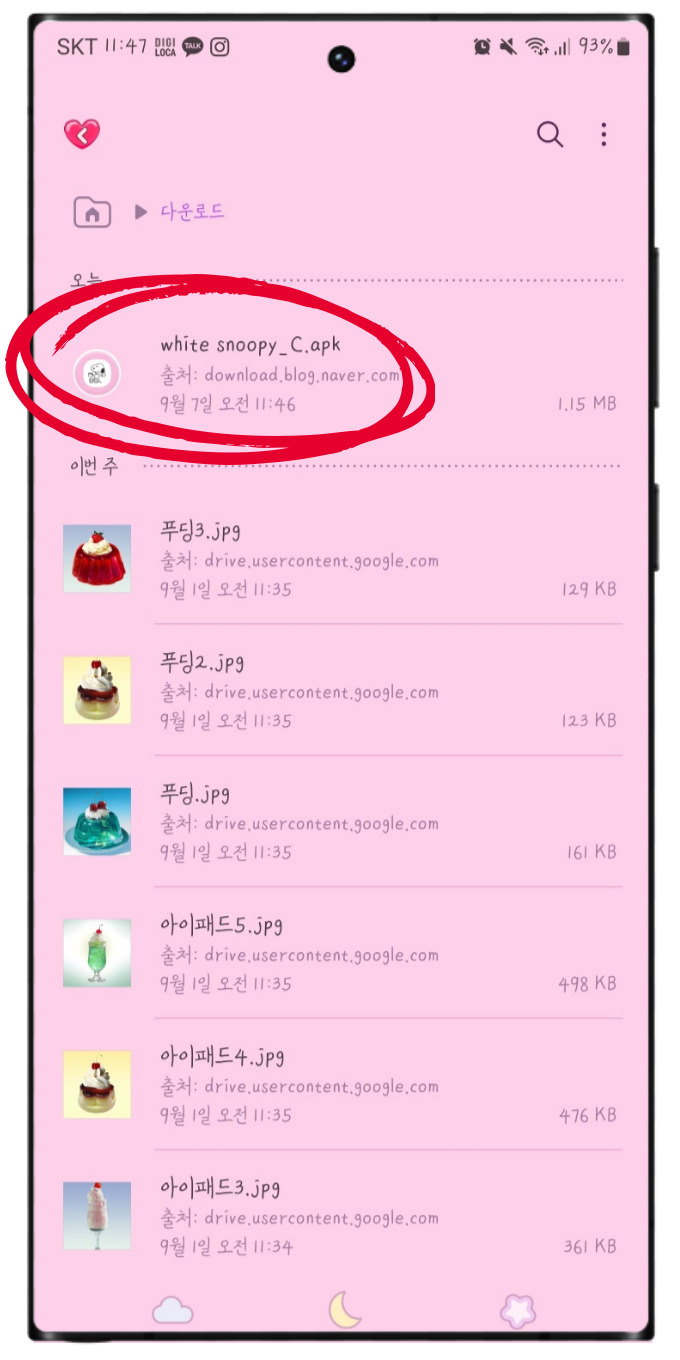 파일 다운로드 후 <내 파일>앱에서