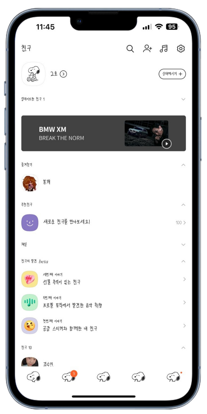친구목록부터, 메뉴탭, 대화방까지