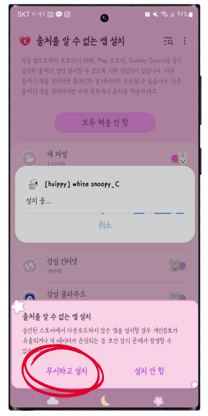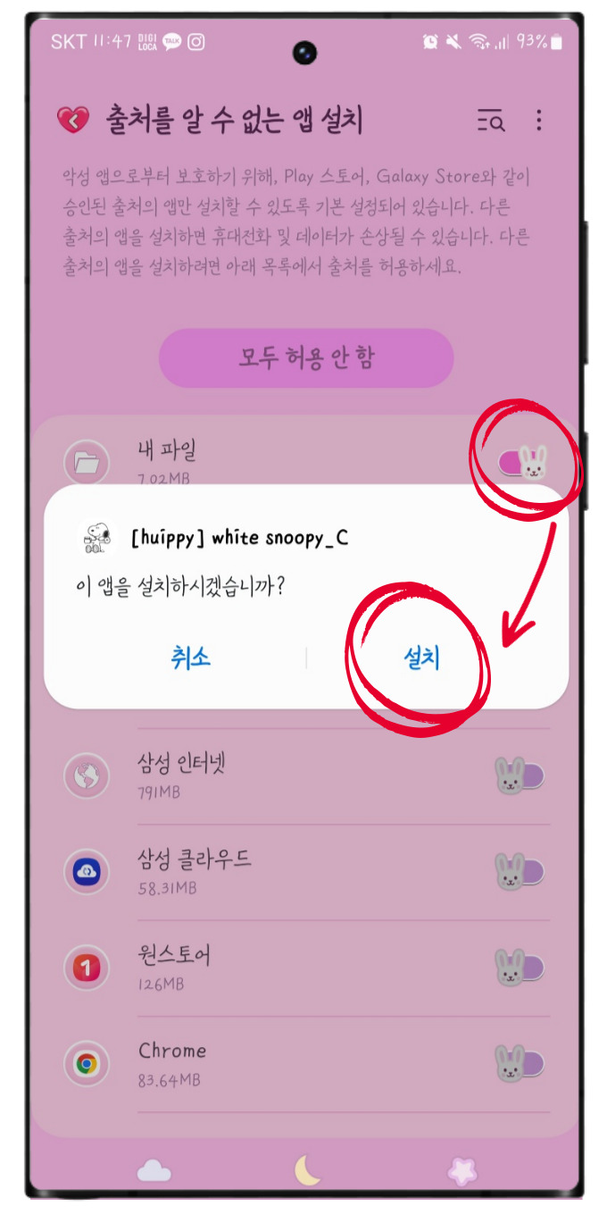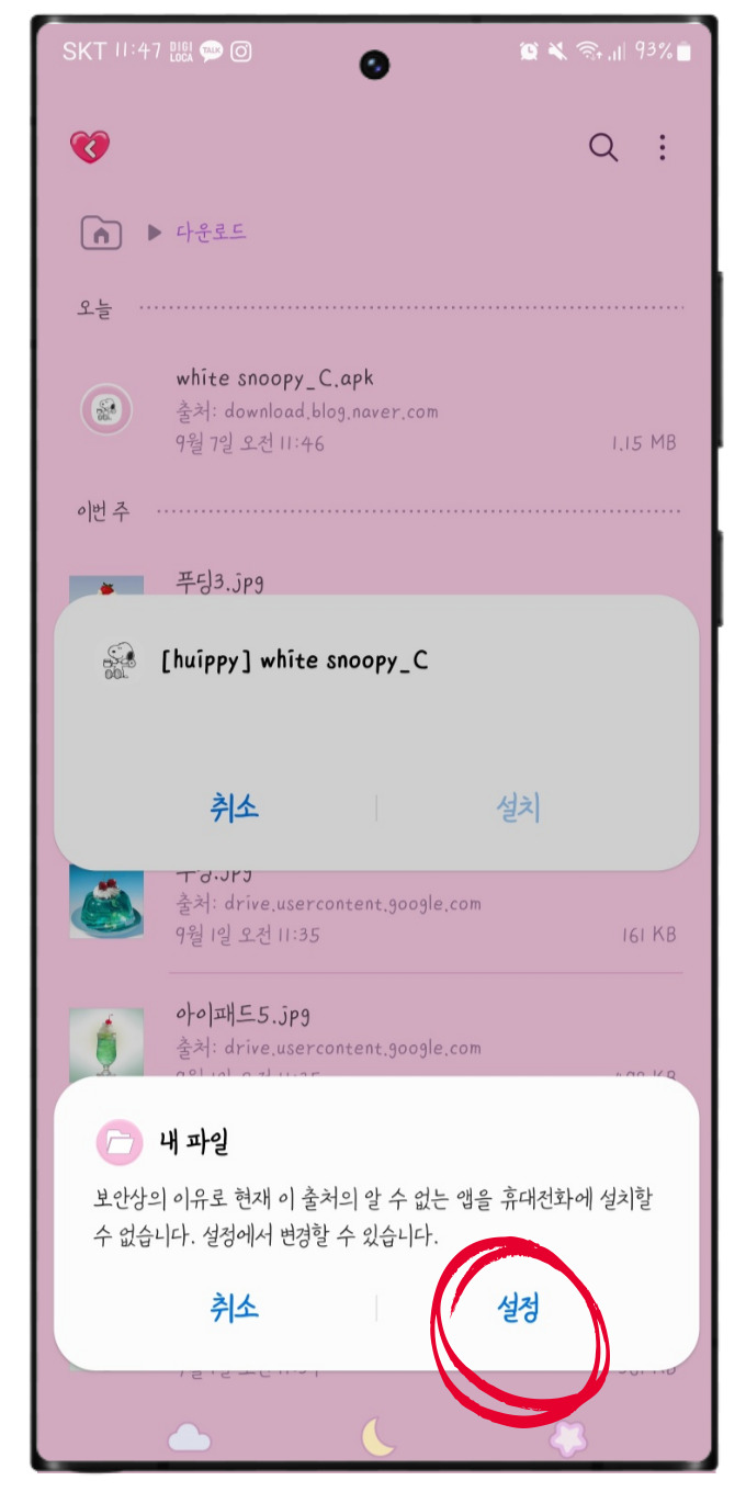 앱 설치 허용을 해 주셔야 하는데요.