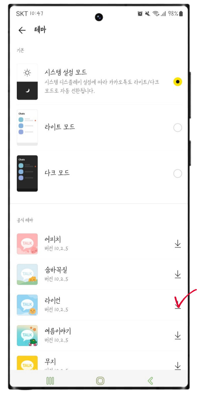 안드로이드 카톡 카카오톡 테마 다운