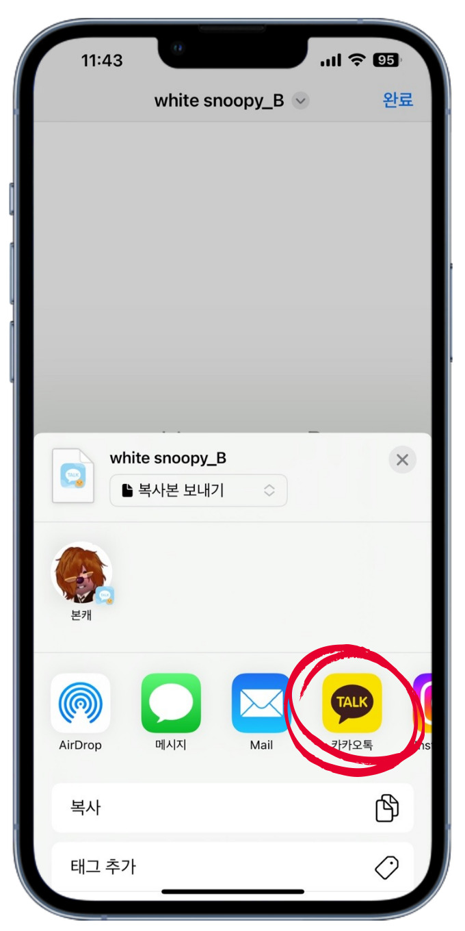 그리고 파일을 카카오톡으로 보내 주시면 되구요.