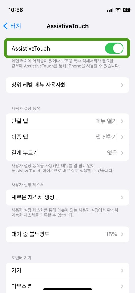 아이폰에서 마우스를 연결하려면 필수적인 옵션이기도 한데, 이 부분은 향후 별도 포스팅으로 다뤄보겠다.