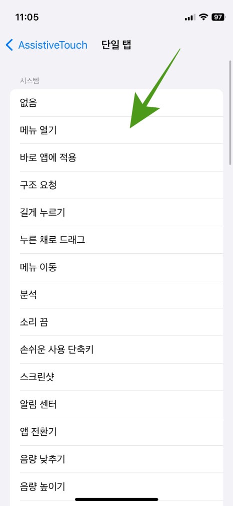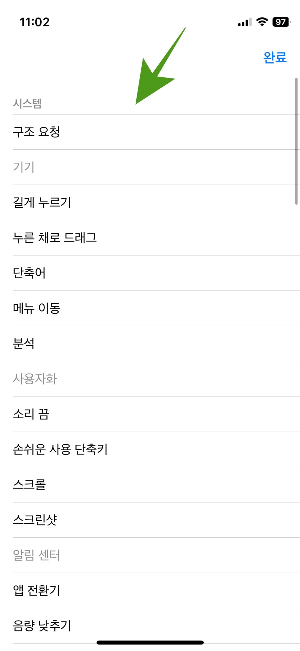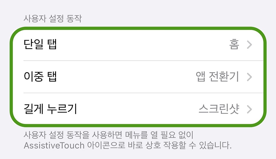 개인적으로는 예전 아이폰의 물리버튼과 동일하게 설정하는 것을 선호한다.
