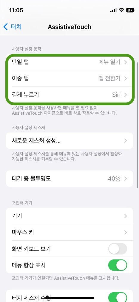 설정방법에 앞서, 가상 홈 버튼인 Assistive Touch를 어떻게 쓸지가 더 중요하다.