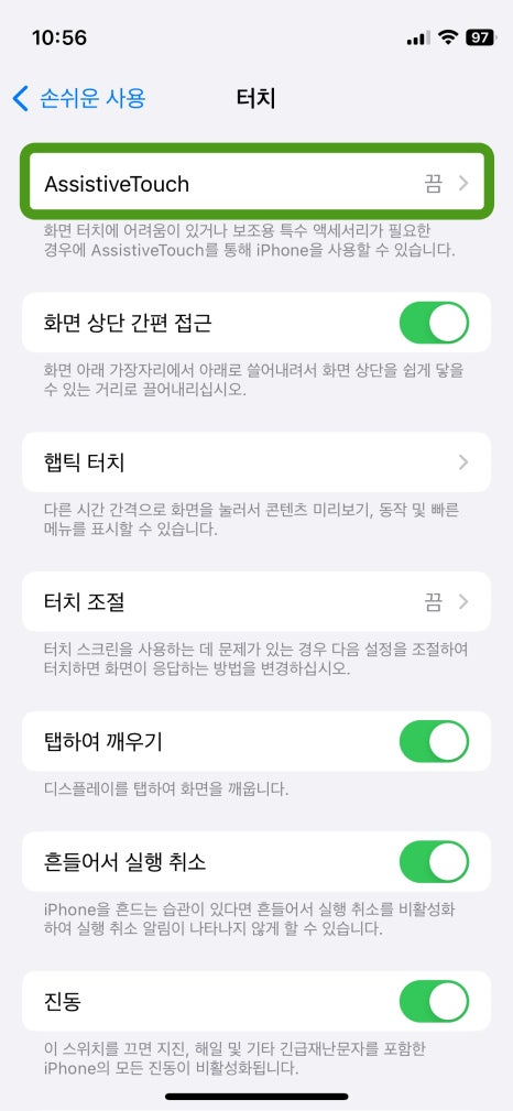 3. 첫번째 항목인 'Assistive Touch'를 터치한다.