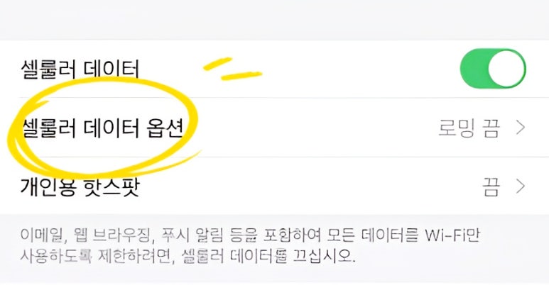 셀룰러 데이터 옵션을 누르세요