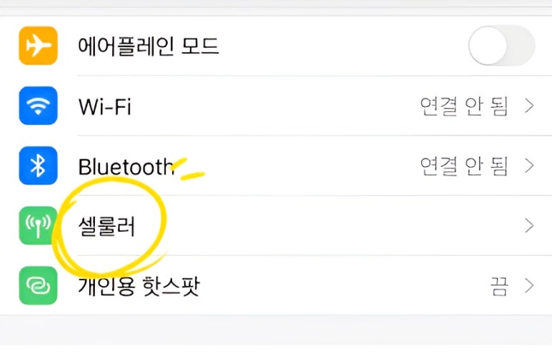 설정에서 셀룰러를 눌러줍니다