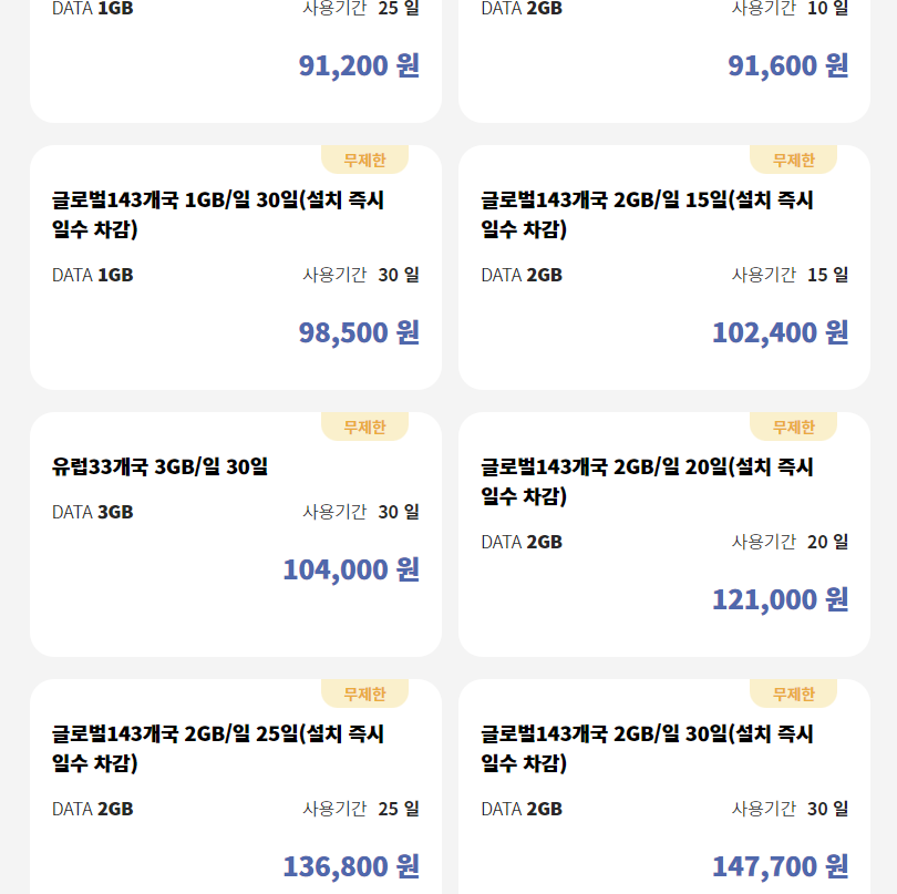 사용법은 로밍과 비슷한데 가격이 로밍보다 저렴해요.