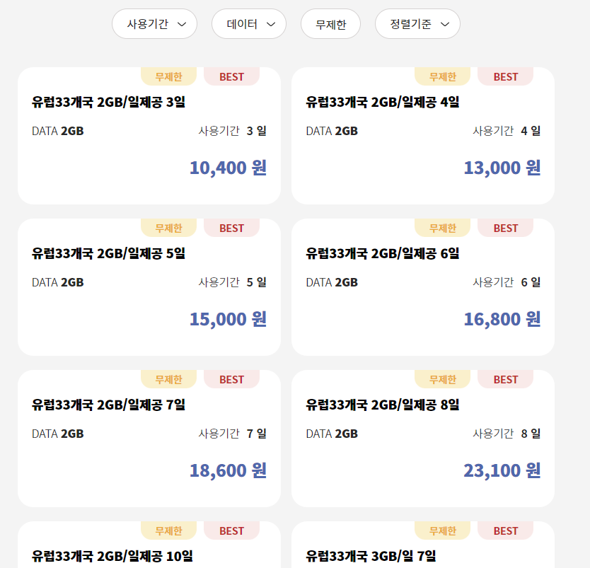 유럽 이심 ESIM & 유럽 포켓와이파이 대여