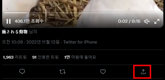 검색해서 다운받고 원하는 동영상 공유링크를 클릭해서 공유 링크를 클릭할때 Twitter용 다운로더를 클릭해서 다운받으면 된다.