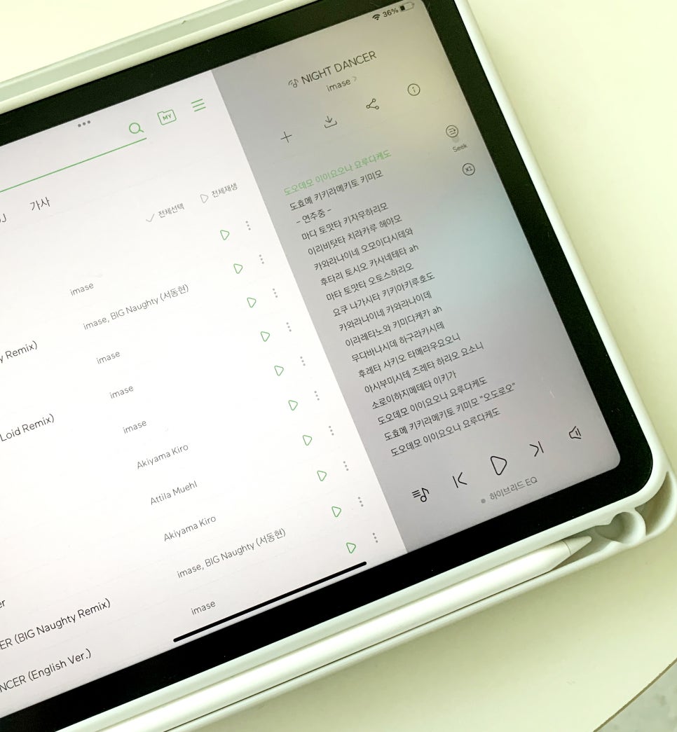 제가 요즘 J-pop을 많이 듣고 있습니다. 그 중에서도 Night Dancer 노래를 참 좋아하는데 일본어를 잘 모르는 관계로 따라부르기가 어려웠어요. 멜론에서는 일본어 가사를 발음으로 보여주어서 따라부르기가 쉬워졌습니다. 멜론이야말로 J-pop에 빠진 저같은 분들을 위한 음악 앱인 것 같아요.