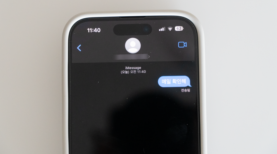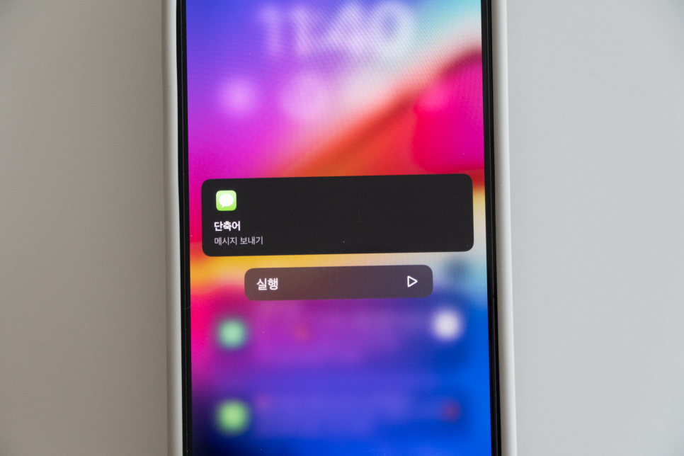 실행 전에 묻기가 선택되어 있다면 설정한 예약 시간에 단축어 알림창이 표시됩니다. 해당 창은 일정 시간이 지나면 사라지니 바로 확인을 해야 합니다. 해당 알림창을 선택하면 실행 버튼이 표시되고 바로 메시지를 전송할 수 있습니다. 만약 실행 전에 묻기가 해제되어 있다면 해당 알림창 없이 메시지는 해당 시간에 바로 전송됩니다. 메시지 앱을 확인해 보면 전송된 메시지와 시간을 확인할 수 있습니다.