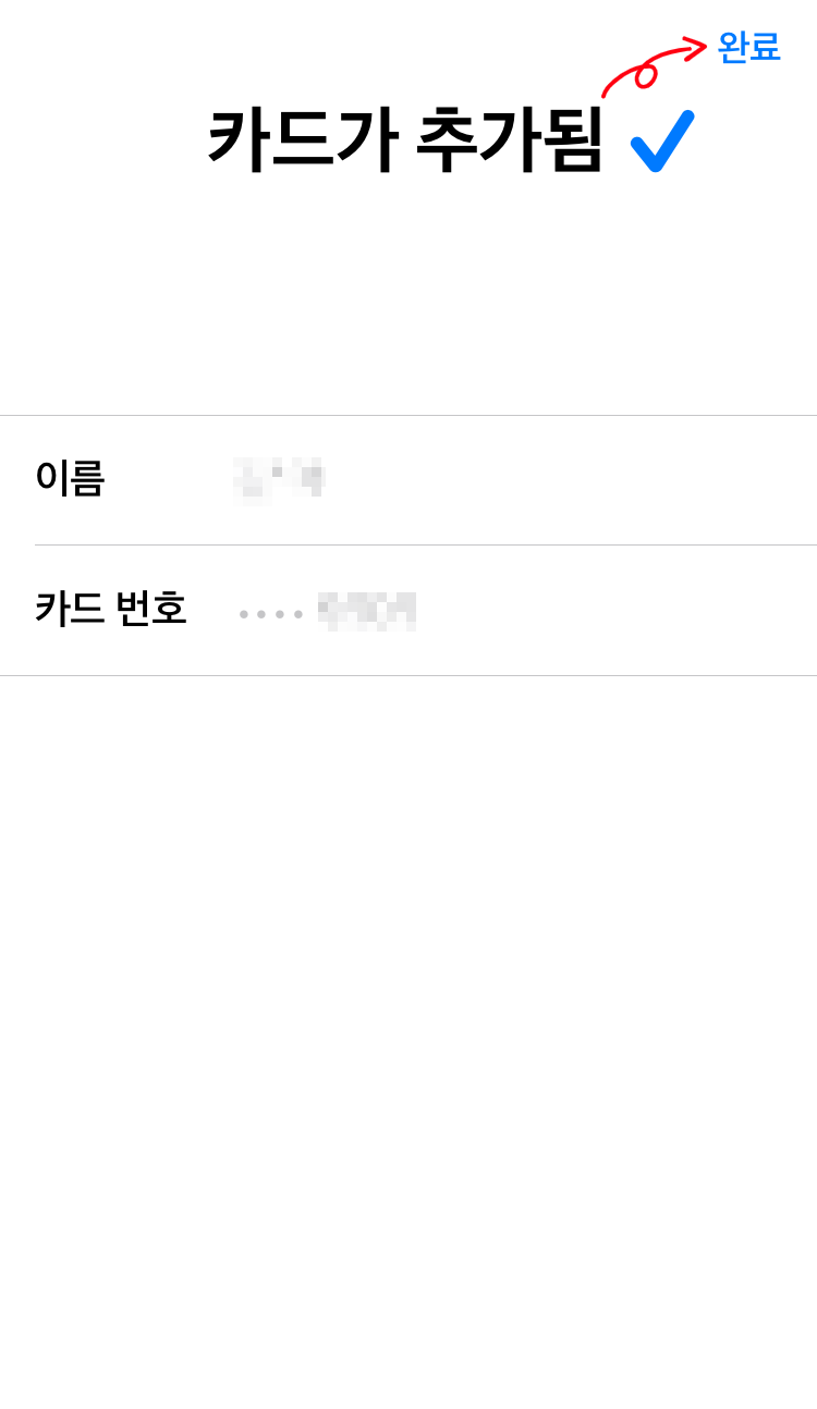 카드 비밀번호를 등록하고,서명을 입력하고요. 결제 비밀번호까지 입력하면 앱카드 등록이 완료되었습니다. 결제시 비밀번호를 입력하기 귀찮다면 Face ID나 Touch ID 인증으로 등록할 수도 있습니다.