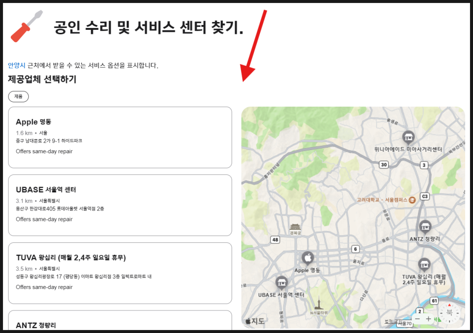 아이폰공식수리센터 위치 찾기