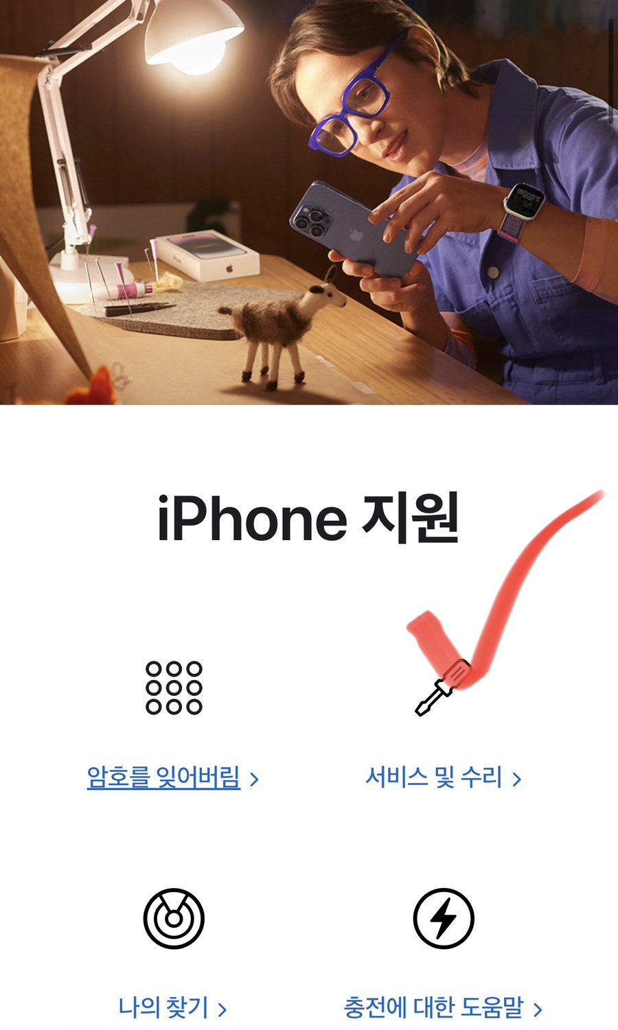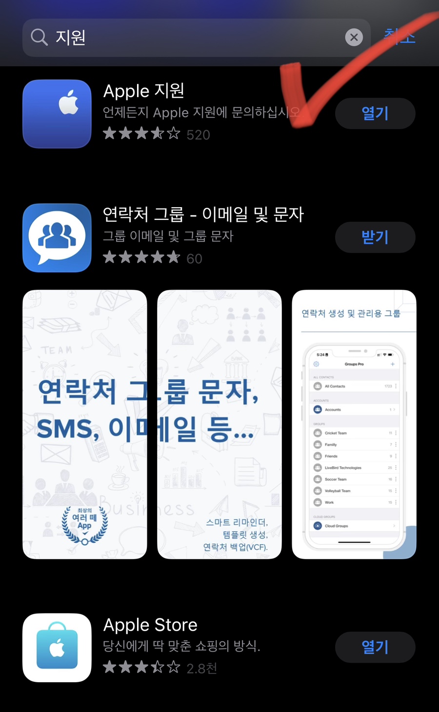 1.아이폰의 앱스토어에서 “지원”앱 설치