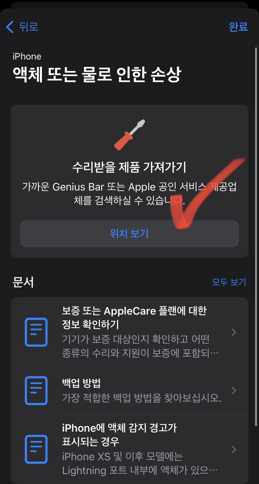 5.가까운 수리센터를 찾기위해 “위치보기”선택