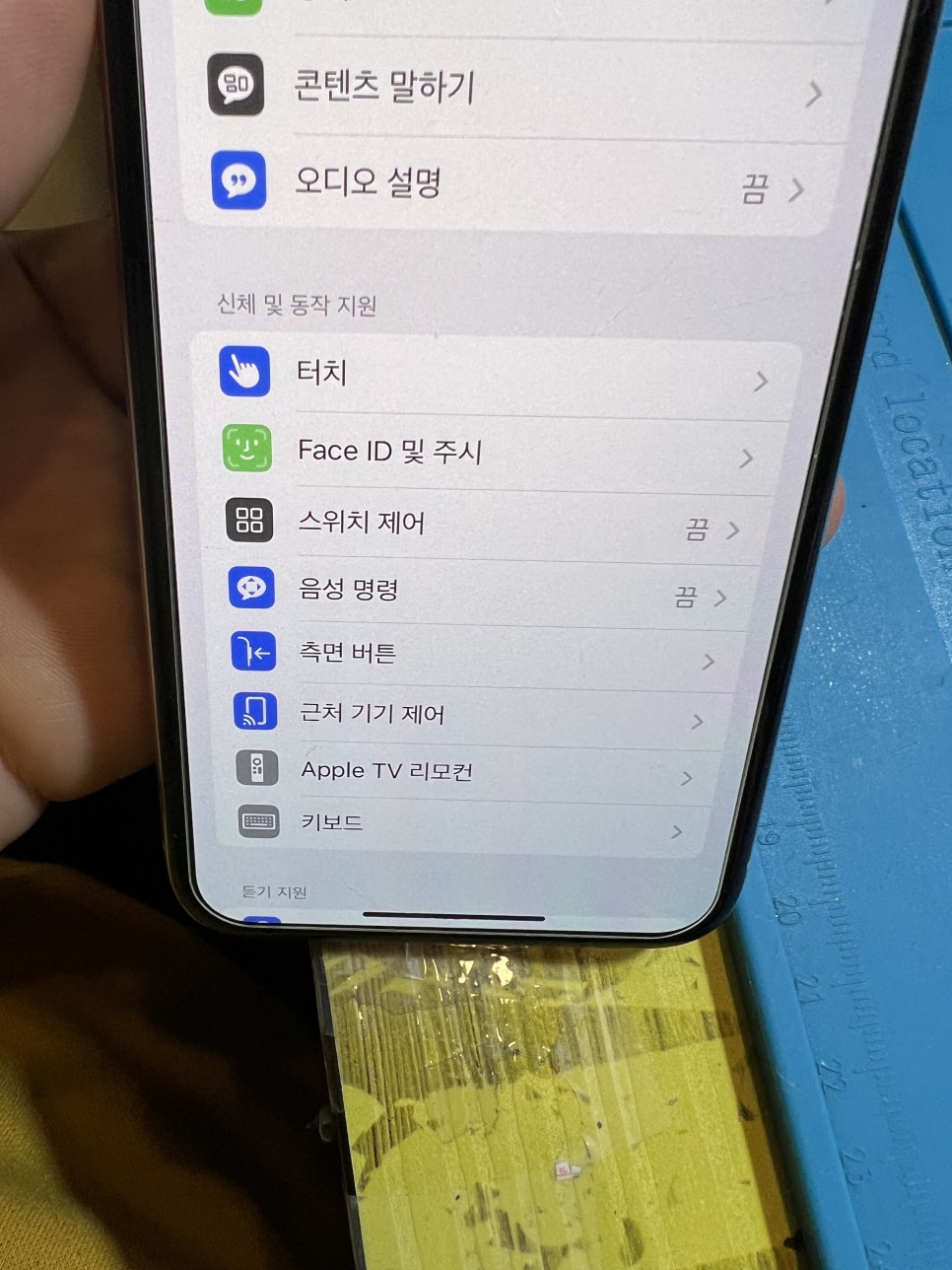 기본 설정에 진입하고나서 손쉬운 사용 메뉴로 들어가면은 신체및 동작지원 카테고리내에 있는 페이스id 및 주시 메뉴가 보이실겁니다 마찬가지로 해당 메뉴로 들어가주시기를 바랍니다!
