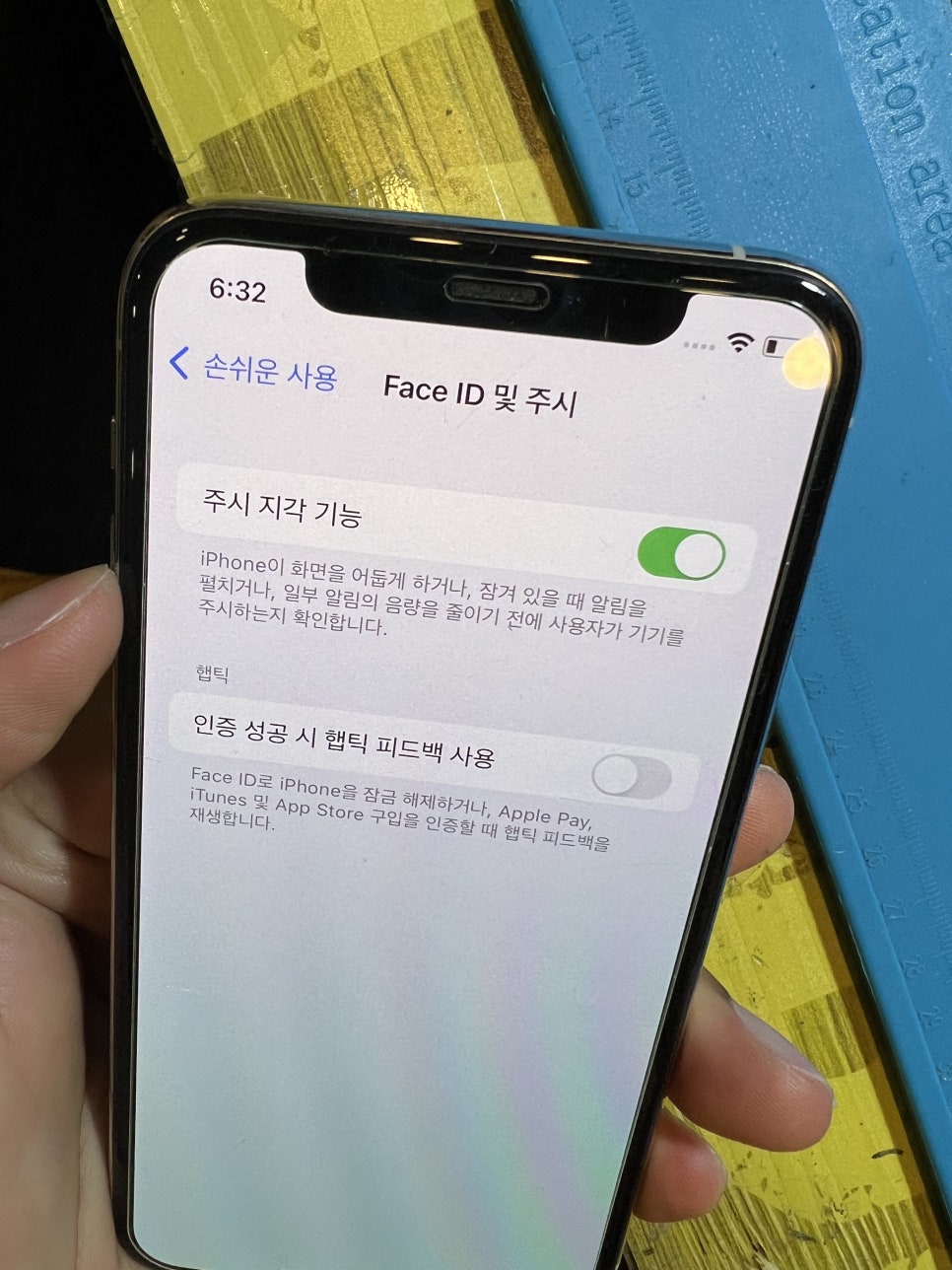 아이폰 주시지각기능 설정은 우측에 보이는 버튼을 누르는것으로 간단하게 켜거나 끌수있으니까 자유자재로 변경하여 써보시기를 바랍니다!