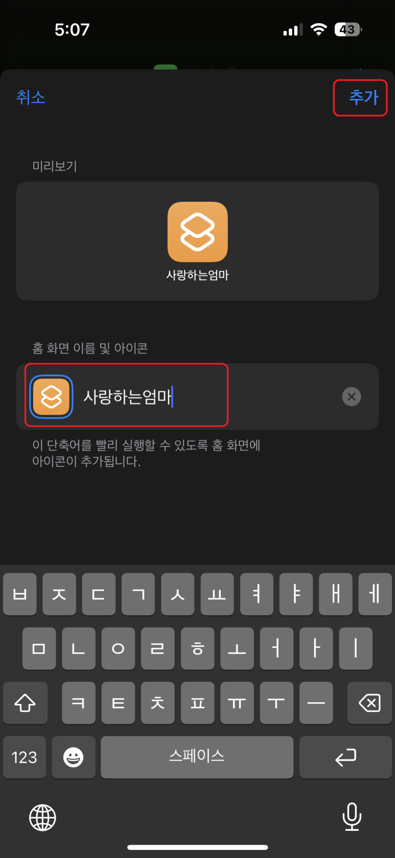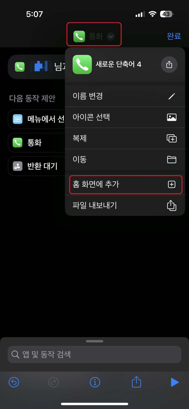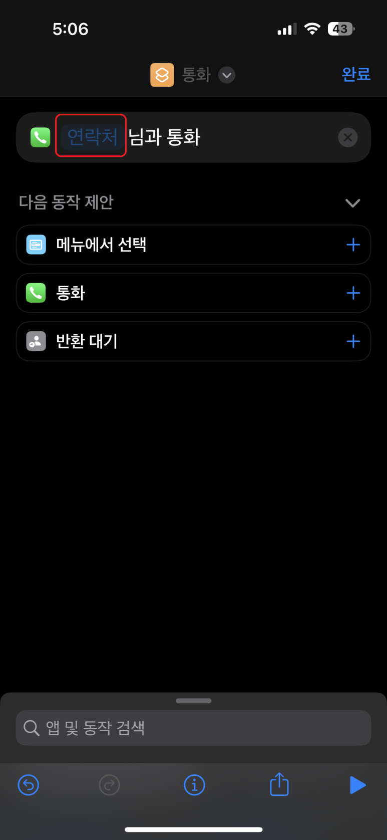 해당 단축어 아이콘으로 지정 된 전화번호로