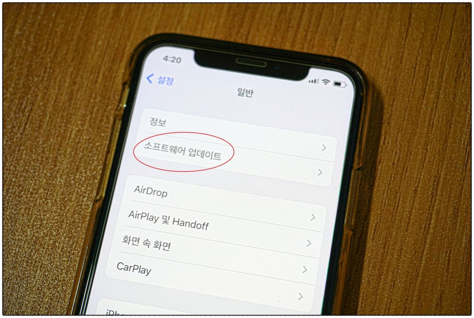 다섯 번째 소프트웨어 업데이트입니다. 설정 -> 일반 -> 소프트웨어 업데이트 -> ios 00(으)로 업그레이드 눌러주시면 됩니다. 저도 업그레이드해야겠네요. 여기까지도 안되신 분들이 계실까요? 되셔야 할 텐데 아쉽네요. 다음으로 넘어가 볼까요?