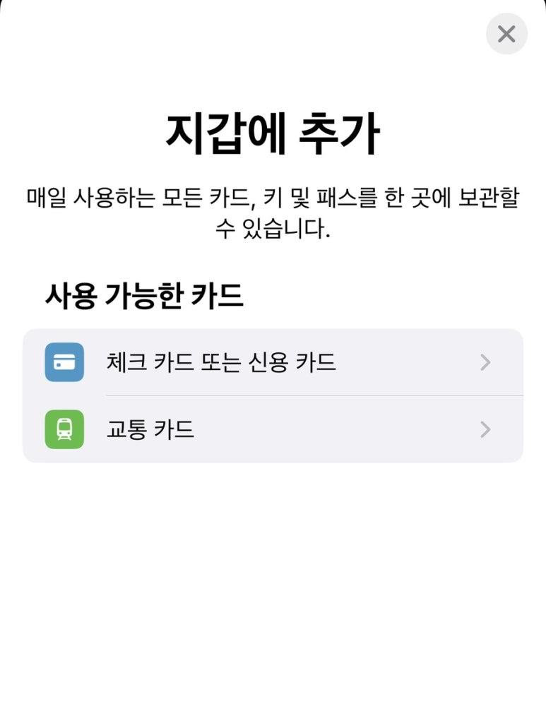 맨 밑에 ‘Apple Pay에 카드 추가’ 클릭!