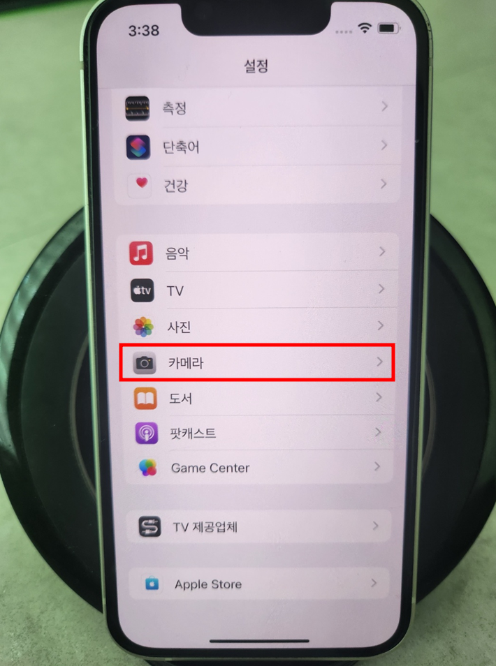 스크롤을 내려 '카메라' 버튼을 누릅니다.