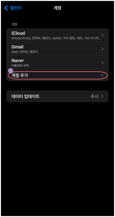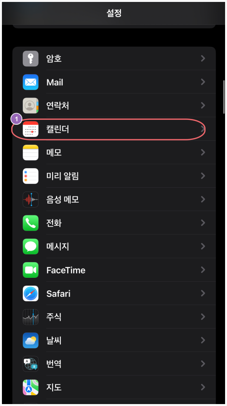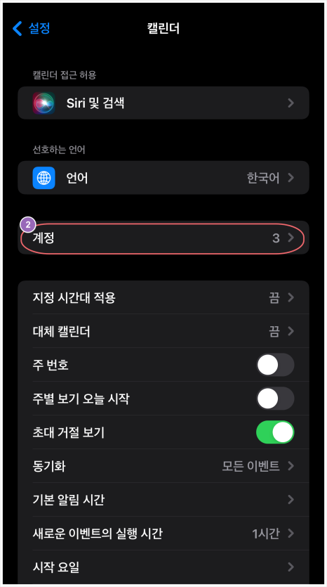 1. 아이폰 설정 앱 - 캘린더 - 계정