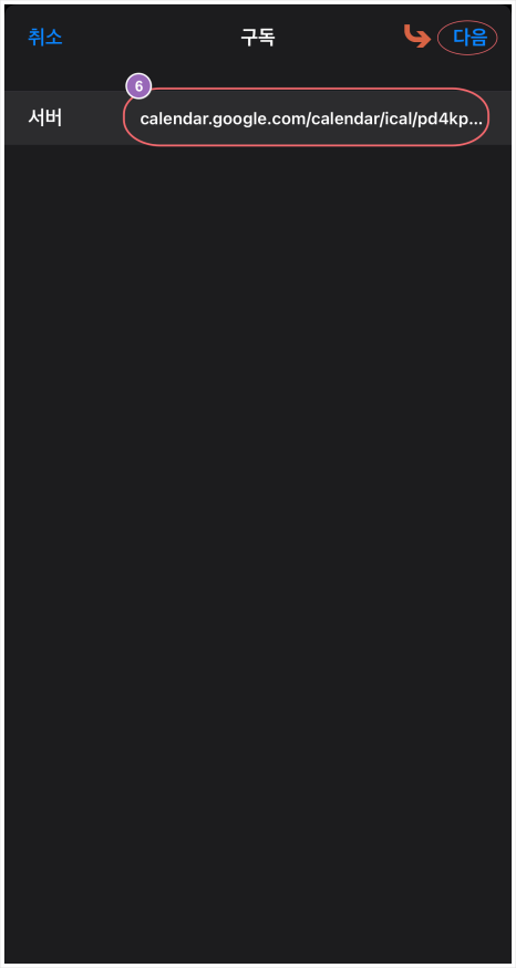 저는 24절기 +음력 5일 간격 표시로 주소로 복붙했어요 - 4. 복붙 후 상단 다음 버튼 클릭 - 저장