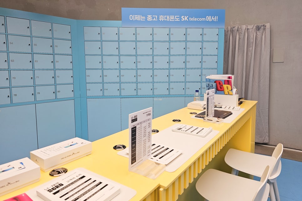 SKT ZERO 팝업 스토어 중앙에는 실제로 판매가 되고 있는 휴대폰과 패키지가 전시되어 있습니다. 평소에 관심이 가던 아이폰의 디자인과 외관을 잠시 살펴볼 수 있고, 실제로 실물을 확인해 볼 아이폰 중고폰 추천 기종을 마음속으로 결정해 보아도 좋을듯하죠?