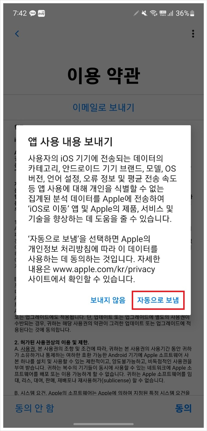 계속 > 동의 > 자동으로 보냄