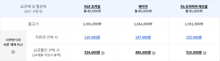파란색 숫자가 받을 수 있는 공시지원금인데요.