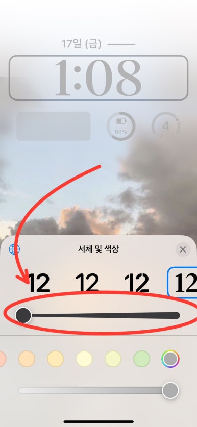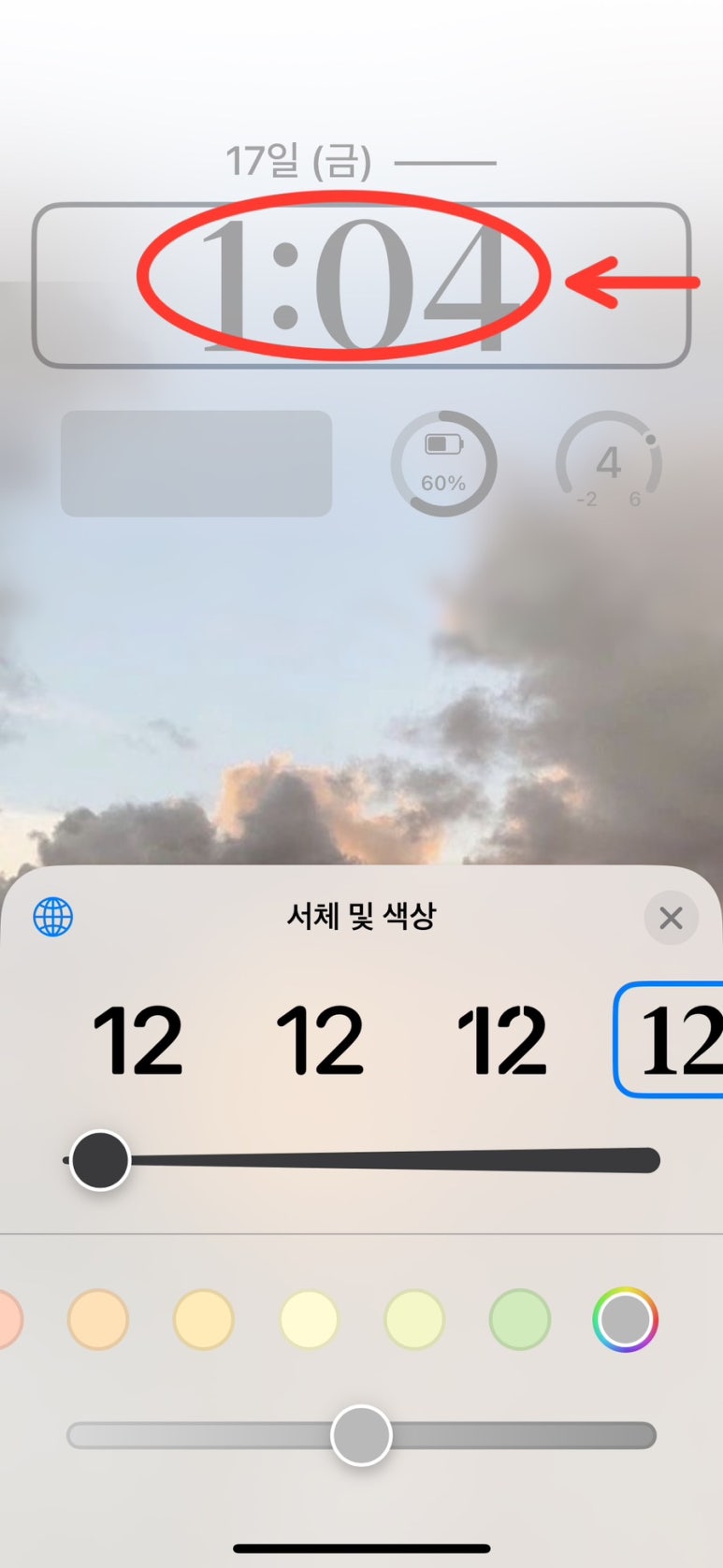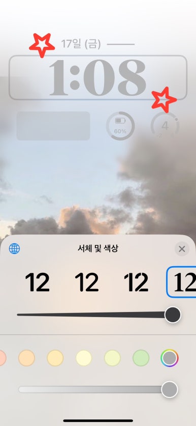시계를 눌러 서체 및 색상을