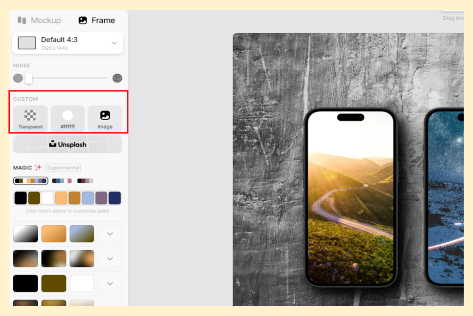 9) 프레임에서 CUSTOM을 선택하면 배경을 원하는 것으로 변경할 수 있습니다.
